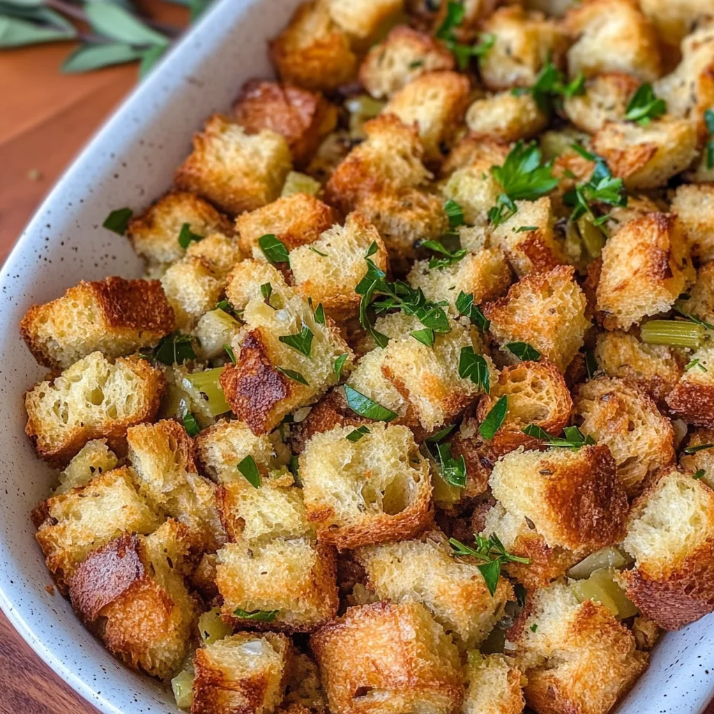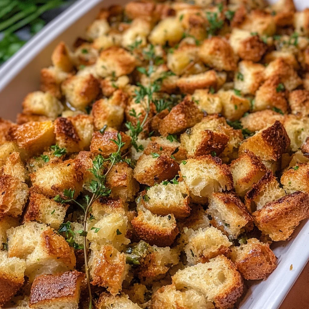 Grandma’s Thanksgiving Stuffing Recipe is a time-honored dish that embodies the warmth of family gatherings and the joy of the holiday season. This comforting stuffing, with its perfect balance of chewy and moist textures, is flavored with aromatic herbs and spices that bring every bite to life. Whether served at a festive dinner table or as a cozy weeknight meal, this stuffing will delight family and friends alike. It’s easy to prepare, can be made ahead of time, and offers flexibility for variations—making it a staple in any home kitchen. Dive into this delicious recipe, create unforgettable memories, and savor the essence of togetherness!