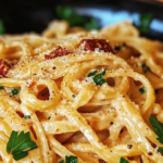 Marry Me Pasta is a creamy, meatless dish inspired by the flavors of marry me chicken, featuring sun-dried tomatoes and Parmesan cheese.
